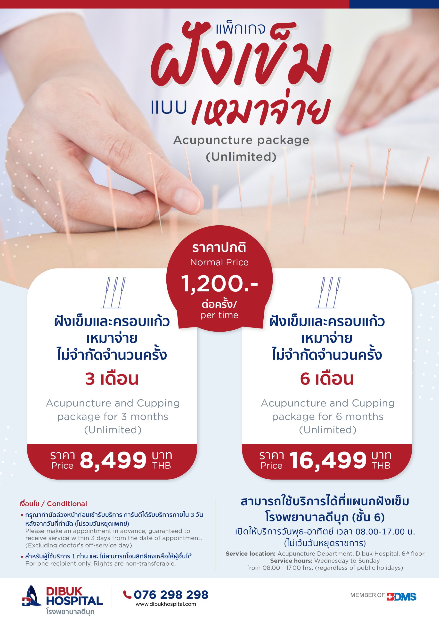 แพ็กเกจฝังเข็มแบบเหมาจ่าย Acupuncture package (Unlimited)